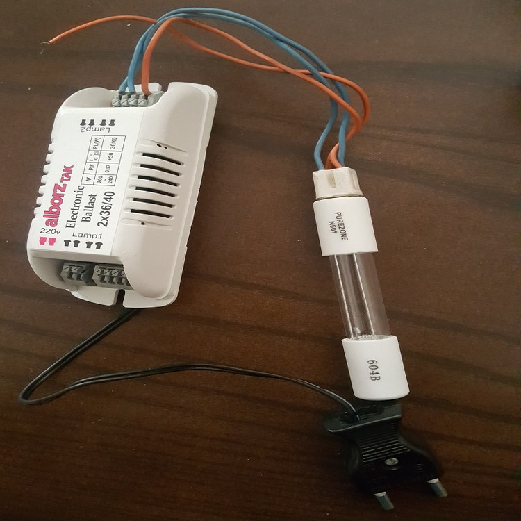 این لامپ UV همراه با ترانس و دوشاخه برق عرضه میشود.( به صورت آماده استفاده با برق 220ولت خانگی )