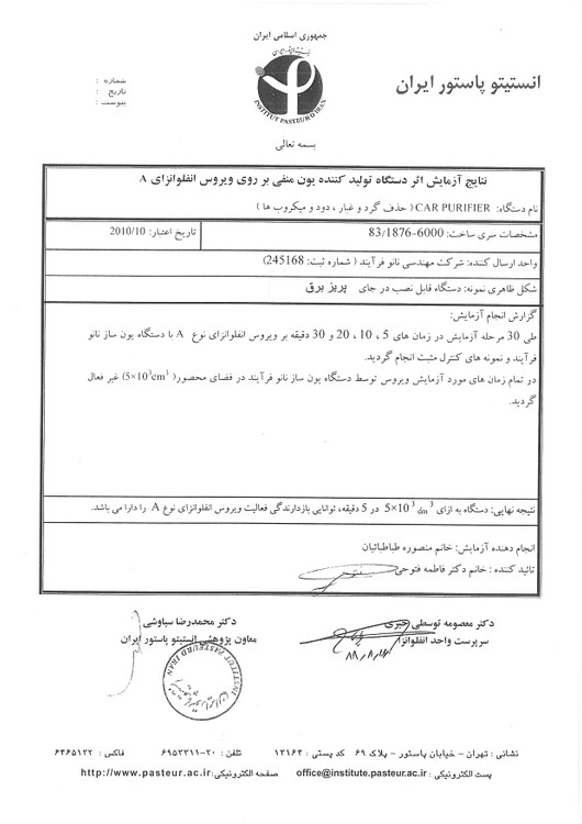 تاییدیه حذف ویروس آنفولانزا را از انیستیتو پاستور ایران دارد.